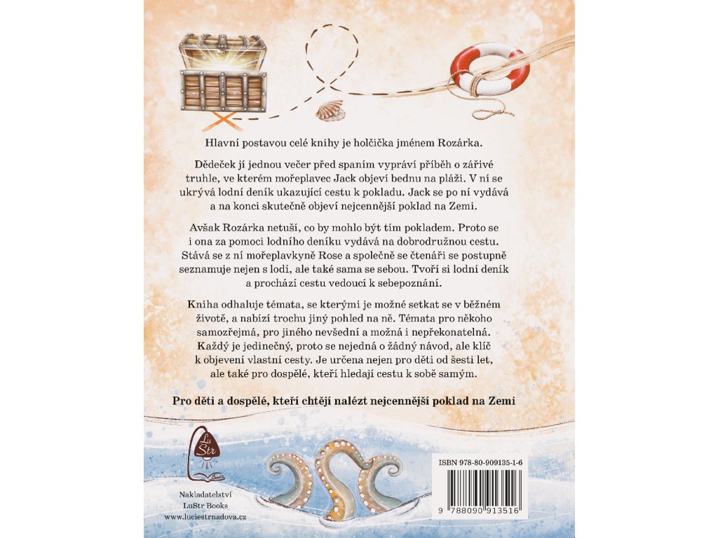 Avšak Rozárka netuší, co by mohlo být tím pokladem. Proto se i ona za pomoci lodního deníku vydává na dobrodružnou cestu. Stává se z ní mořeplavkyně Rose a společně se čtenáři se postupně seznamuje nejen s lodí, ale také sama se sebou. Tvoří si lodní deník a prochází cestu vedoucí k sebepoznání.