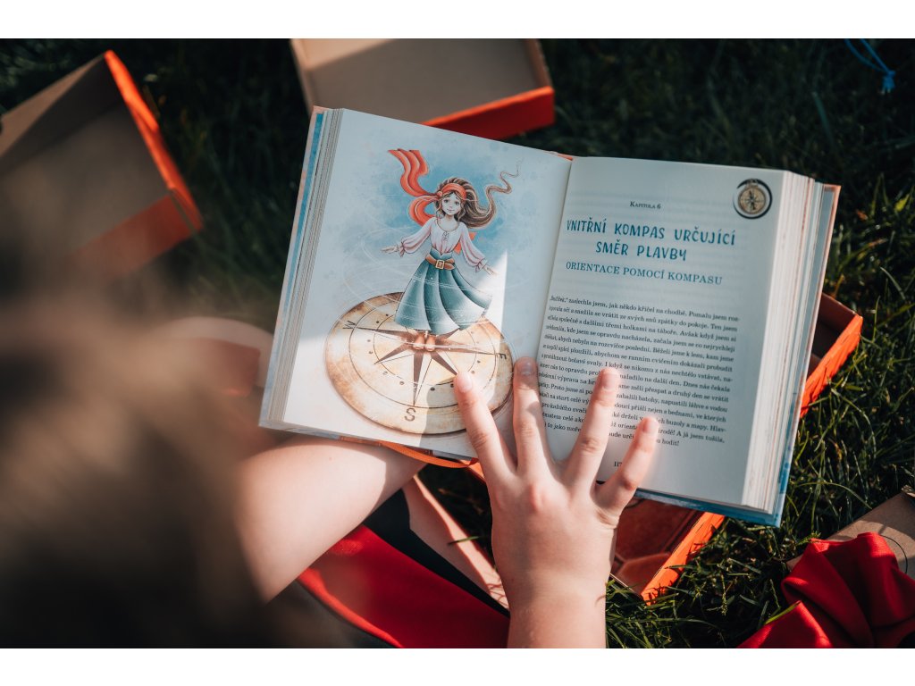 Obsah balíčku: kniha S Rozárkou za sebepoznáním, kniha Lodní deník, červený mořeplavecký šátek, kotvička na krk, lodička, zrcátko, karty sebepoznání/mapa (2v1), dárkové balení.